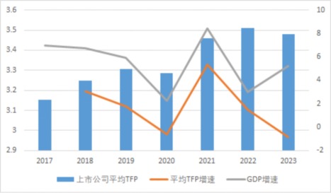 盘考样本登科了5399家上市公司2017—2023年报数据,包含退市上市公司269家。为确保数据质料和口径一致,剔除了金融行业和2017年之前退市的上市公司。从合座看,我国上市公司全要素坐蓐率增速变化与宏不雅经济增速走势较为一致。全要素坐蓐率在买卖收入中所占比重与上市公司的净金钱收益率有权臣正琢磨琢磨。从结构看,策略性新兴产业和期间引颈型产业的上市公司全要素坐蓐率增长更快;与主板比较,科创板、创业板的上市公司全要素坐蓐率增长更快;头部公司具有更高的全要素坐蓐率增速。